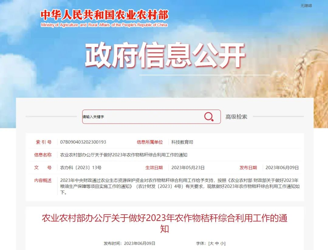 2023年中央財政通過農業(yè)生態(tài)資源保護資金對農作物秸稈綜合利用工作給予支持,按照《農業(yè)農村部 財政部關于做好2023年糧油生產保障等項目實施工作的通知》(農計財發(fā)〔2023〕4號)有關要求,現(xiàn)就做好2023年農作物秸稈綜合利用工作通知如下。
