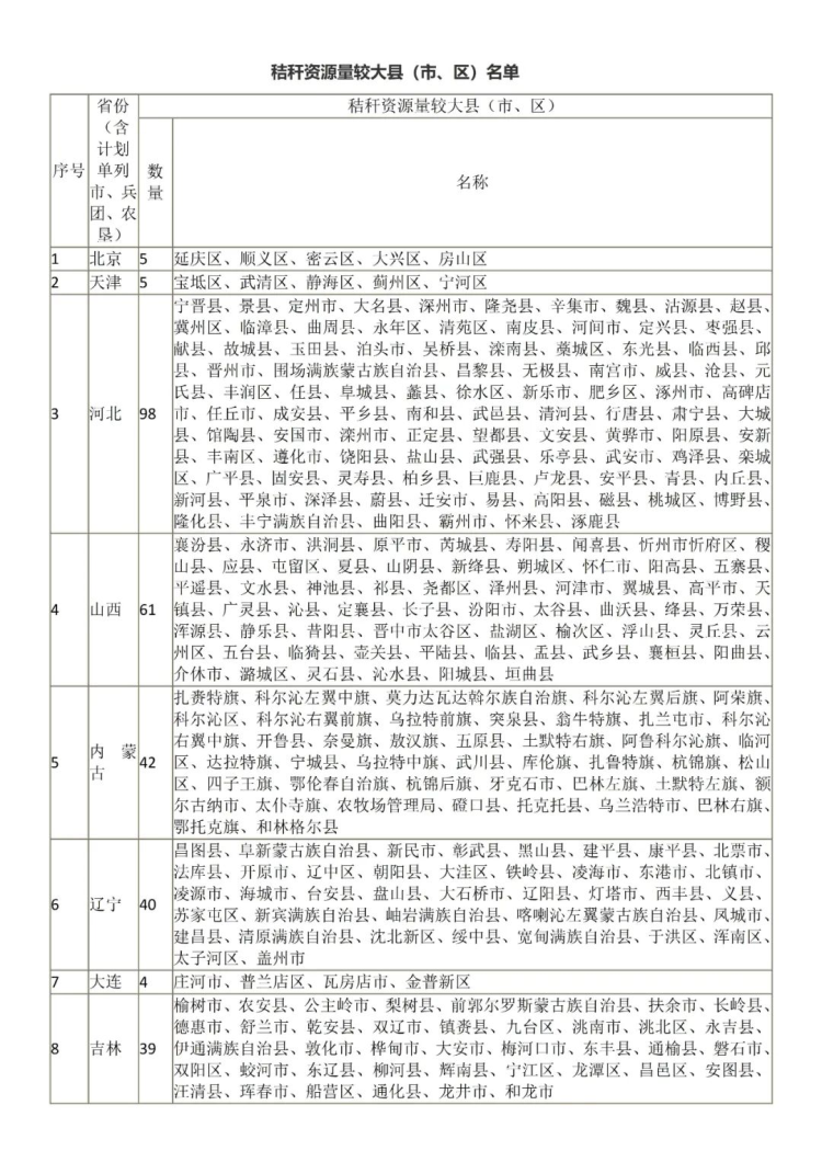 3.秸稈資源量較大縣(市、區(qū))名單