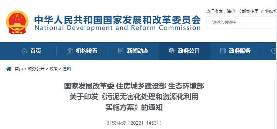 三部委印發《污泥無害化處理和資源化利用實施方案》