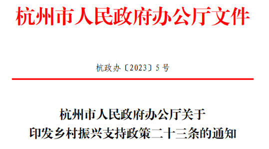 近日,為全面深化千萬工程,高水平推進杭州鄉村全面振興,加快推動農業農村現代化先行示范,杭州市出臺《鄉村振興支持政策二十三條》,具體如下↓↓