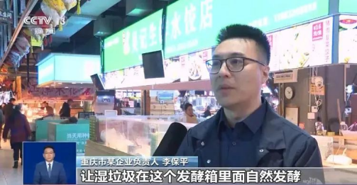 重慶市某企業負責人 李保平:就是通過有機菌種,讓濕垃圾在發酵箱里面自然發酵,把水,還有二氧化碳,這些全部分解出來。水就通過我們這個污水處理設備,然后達到市政排放標準之后直接排入地下管網。二氧化碳我們還有一個專門的廢氣處置設備,也是達到市政排放標準之后排入大氣中。