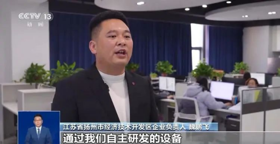 江蘇省揚州市經濟技術開發區企業負責人 魏鵬飛:現在每天可回收300噸左右廢紙。通過我們自主研發的設備,進行智能分揀、破碎、壓縮、打包,再通過配套企業處理制作成成品紙,也可制作成咖啡機、垃圾桶、生鮮托盤等紙漿模型。