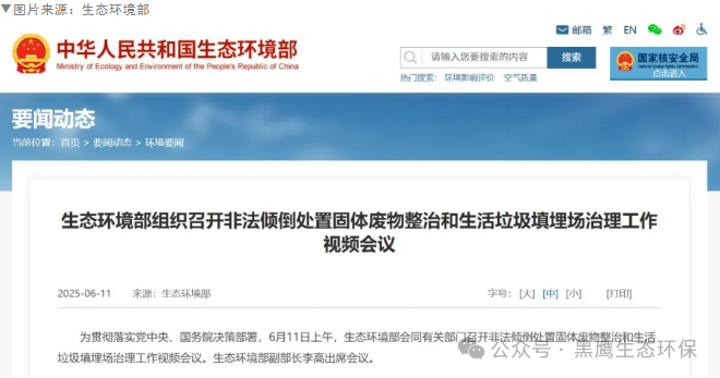 早在6月11日,生態(tài)環(huán)境部就會同有關部門,召開了非法傾倒處置固體廢物整治和生活垃圾填埋場治理工作視頻會議。生態(tài)環(huán)境部副部長李高出席會議。